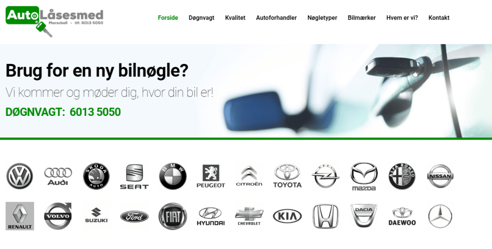 Autolåsesmed Marschall hjælper dig med ny bilnøgle, reparation af den gamle eller udskiftning af billåsen. Vi er førende på markedet og kan derfor tilbyde de bedste priser til den bedste service. Vi opererer i Hele Storkøbenhavn samt Sjælland, og vi kan ofte være hos dig inden for 30 minutter.